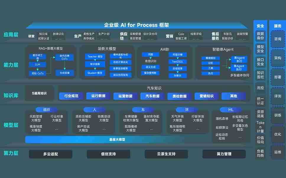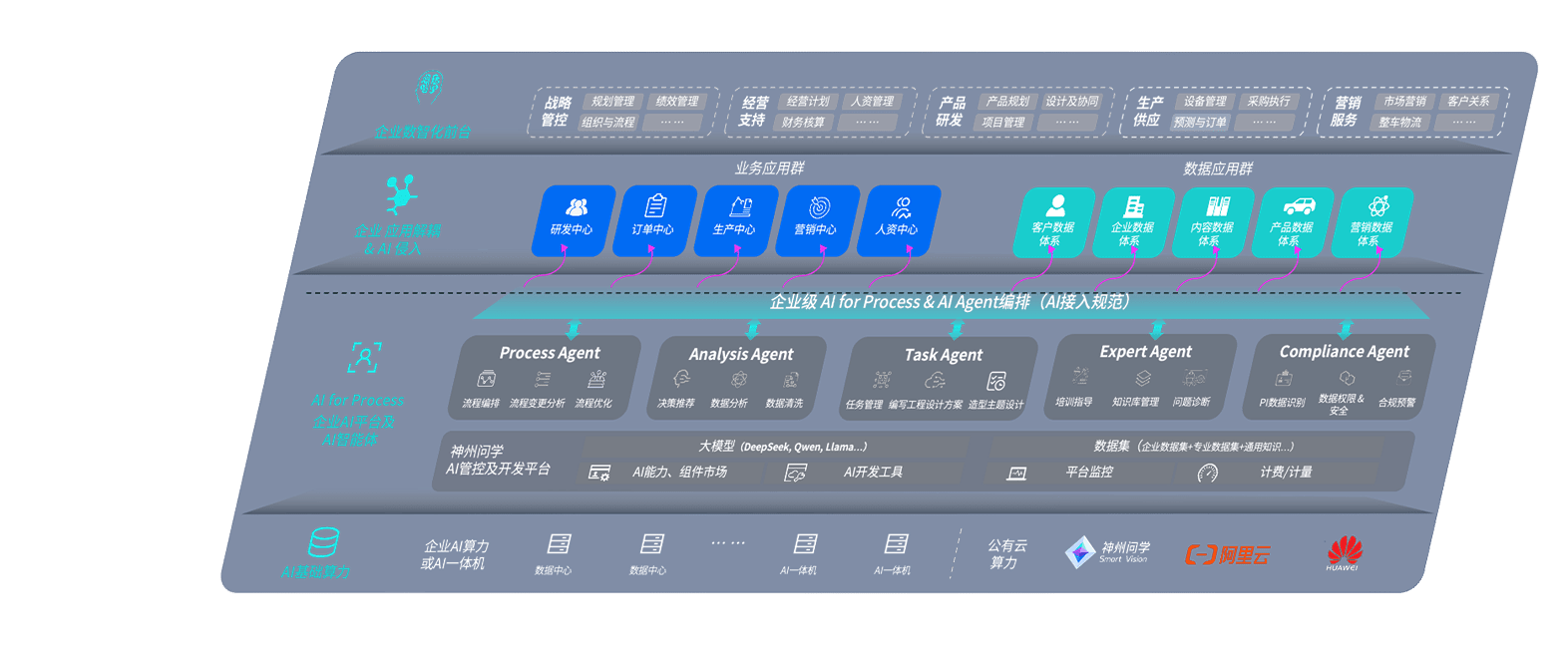 z6尊龙旗舰厅问学智车解决方案是一套基于AI技术的汽车行业智能化系统,,覆盖从底层算力到顶层AI应用的全栈方案。。。方案由算力层、、、、模型层和应用层组成:算力层,,,,方案支持多种一体机配置,,,具备云端灵活部署、、、、多云适配以及动态优化计算资源的能力;模型层,,,,z6尊龙旗舰厅问学平台版提供了企业级AI应用一站式构建与管理平台,,,支持基于后训练强化技术的汽车企业专属模型的训练、、评测和运营;应用层,,,,z6尊龙旗舰厅问学DeepSeek版提供包括超级员工、、、智能招采、、、智能营销、、、智能客服、、、AI for BI等一系列解决方案,,,可助力汽车行业实现数字化转型,,,让管理更智能、、响应更敏捷。。