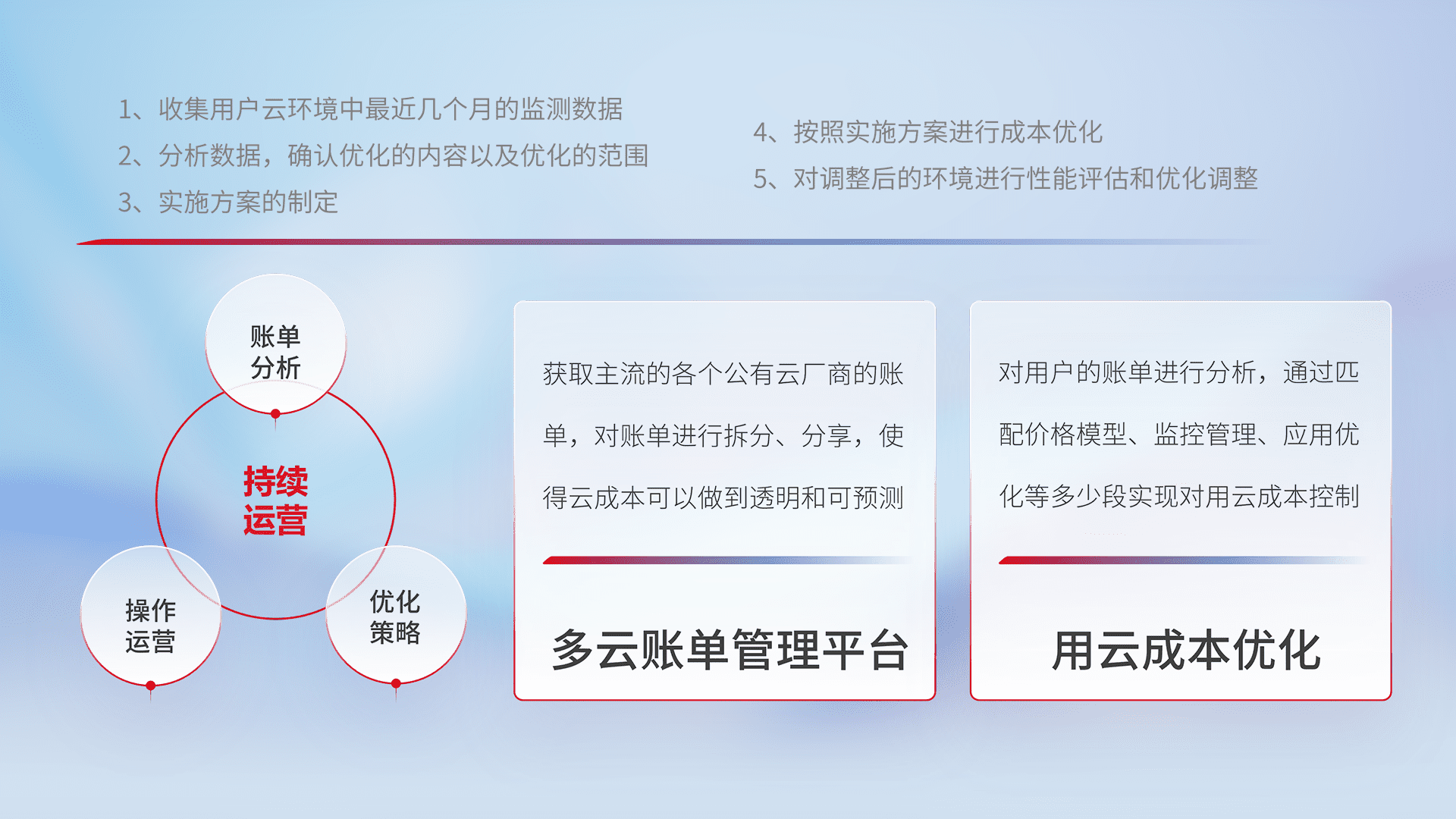 监控业务系统资源开销,,对资源的消耗精确计量,,,实现费用的透明化管理,,,,不断提升资源使用率,,,调整资源购买方式,,,,降低资源费用成本,,,用云成本可预测、、用云费用可优化,,云资源配额有据可依。。